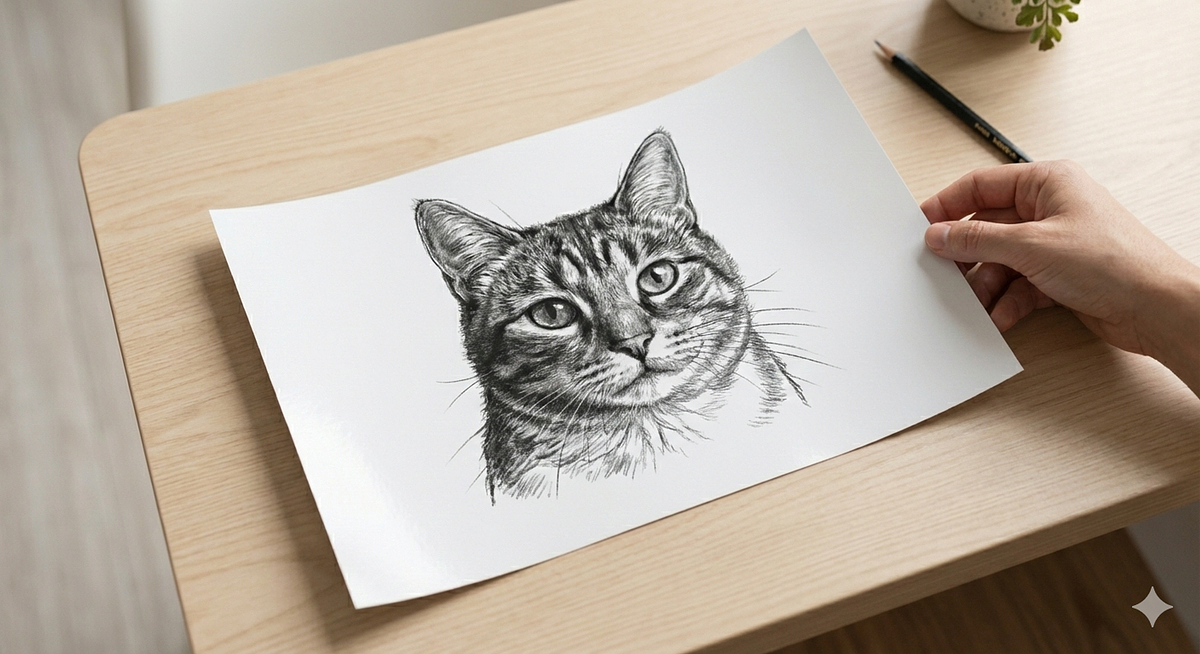 O equilíbrio perfeito entre o digital e o físico. Além do ficheiro de alta resolução, recebe uma impressão de alta qualidade que realça cada traço do carvão. Pode optar pela simplicidade da impressão ou pela sofisticação da arte já emoldurada.